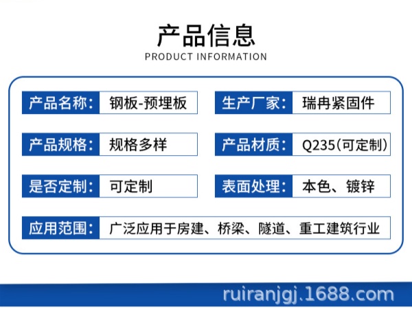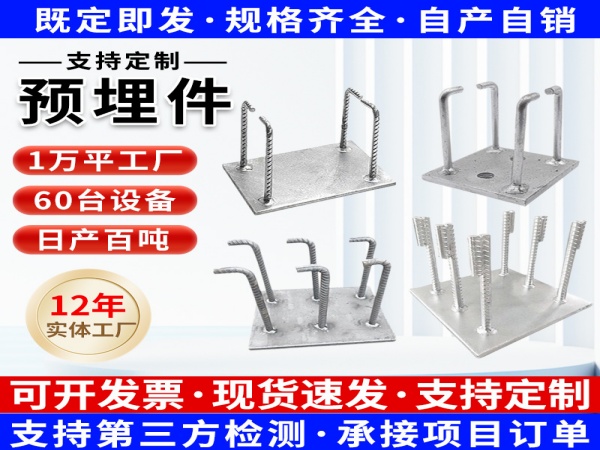 一块钢板 + 几根钢筋(锚筋)。靠焊接连接后续构件。