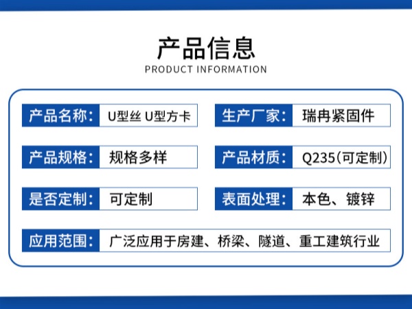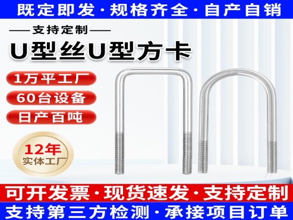 一套完整的 U 型方卡包含:U型丝 + 2个螺母 + 2个平垫/弹垫。采购时问清楚是否含全套配件。