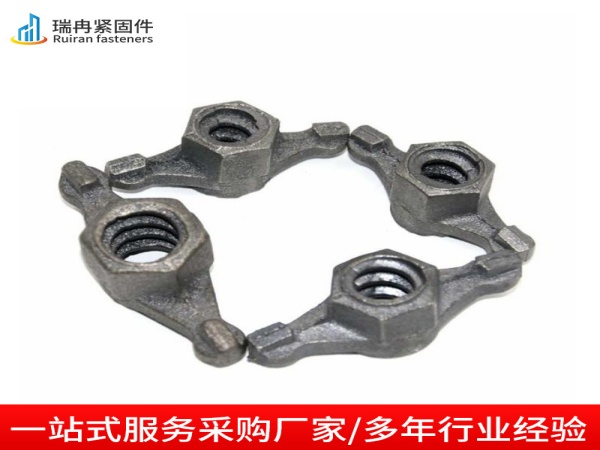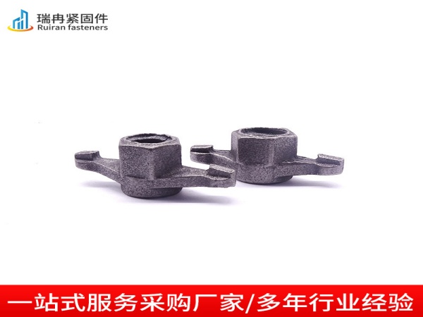 山型母(也叫蝴蝶母、元宝件)是模板加固体系里的“快拆螺母”。它长得像个小山丘,专门配合对拉螺杆(止水螺杆)使用,作用是把模板和钢管死死锁在螺杆上,防止浇筑时爆模。