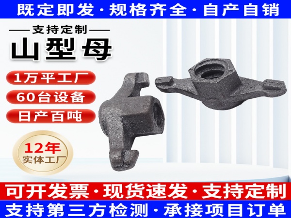 山型母(也叫蝴蝶母、元宝件)是模板加固体系里的“快拆螺母”。它长得像个小山丘,专门配合对拉螺杆(止水螺杆)使用,作用是把模板和钢管死死锁在螺杆上,防止浇筑时爆模。它是干什么的?(与山型卡的区别)很多人分不清“山型母”和“山型卡”,其实它们是一对搭档:配件长相角色安装位置山型母螺母(带翅膀)锁紧件拧在螺杆的丝扣端山型卡垫片(山字形)受力件套在螺杆上,紧贴钢管工作流程:螺杆穿过模板